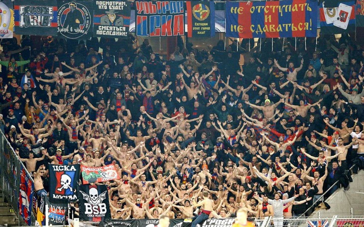 Сектор кс вчера в Базеле. Количество на матче - около 1500. Помимо русских болельщиков армейцев приехали поддержать фанаты Видзева, Руха и Партизана.