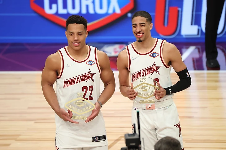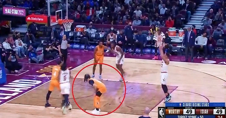 Перед финальным матчем Rising Stars, прошел новый формат конкурсов Clutch Challenge. Особо ничего интересного, суть заключалась в попадании с исторических клатч точек плей-офф на время. Соревнуются парами, кто быстрее прошел все точки - победил. Собственно, победителями стали Тайриз Халибертон и Дэзмонт Бэйн. Хотя мои фэнтэзи игроки, конечно же, Скоти Барнс и Тайриз Макси. Респект за исторический мув, но, в целом, конкурс проходной.