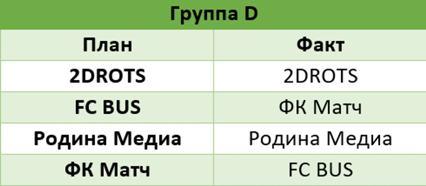 Родина Медиа - FC BUS. Классный матч, который являлся своего рода дерби, но всё же очень грязный, много стычек и провокаций. Родина Медиа структурированная команда, поэтому их победа закономерна.