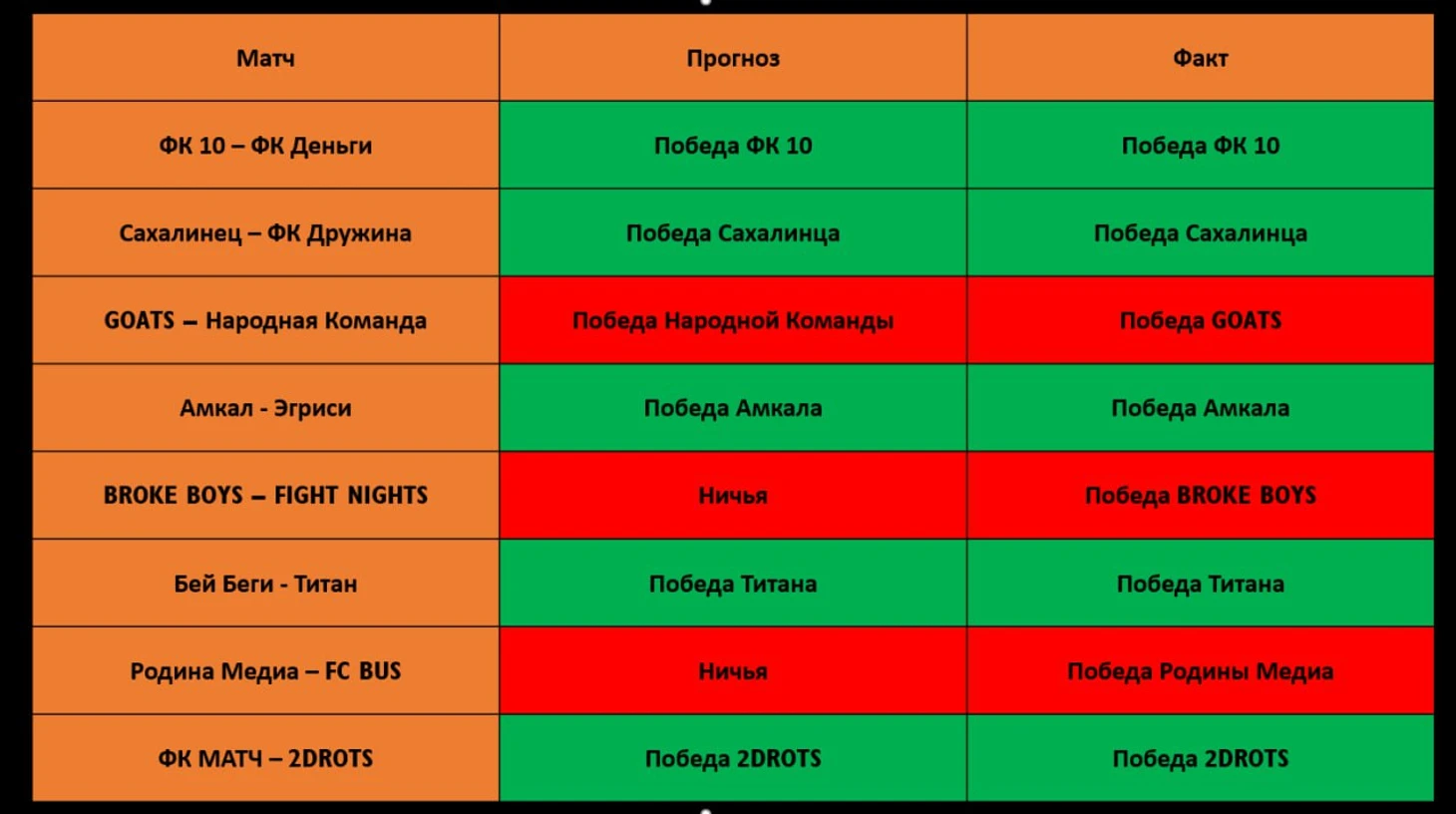 Народная команда - ФК 10. Своеобразная история, потому что Народная показала, что она играет довольно-таки слаженно. ФК 10 делает хорошее, для медийного статуса, шоу в рамках реалити Азамата Мусагалиева «Большая десятка». По результату ставим на результативную ничью.