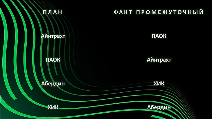 9 очков у ПАОКа, 6 очков у Айнтрахта, у двух других команд по 1. В этой группе вопрос лишь в том, как греки и немцы поделят первые два места.