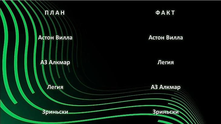 Допустим, что с Астон Виллой всё было очевидно, кроме ничьей со Зриньски. Да-да, ещё было поражение от Легии в ярком матче, но это другая история. В общем, предсказуемо стали лидером и прошли дальше.