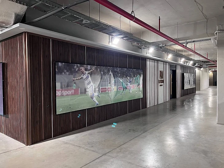 Внутри стадион оказался совершенно обычным. Не могу сказать, что у меня были какие-то особые ожидания, но уж прям совсем голые серые стены меня встретили. Выделялась только одна ложа, принадлежащая компании «LIXIN Group».