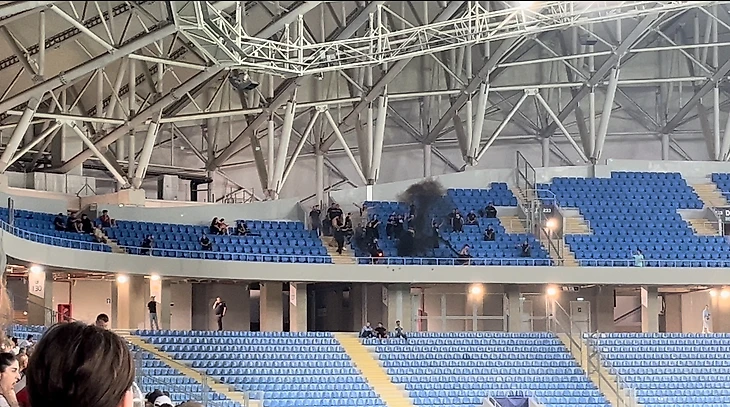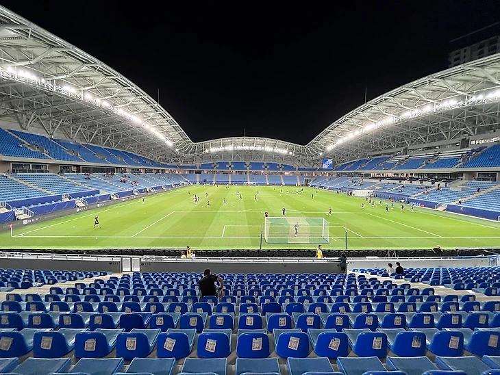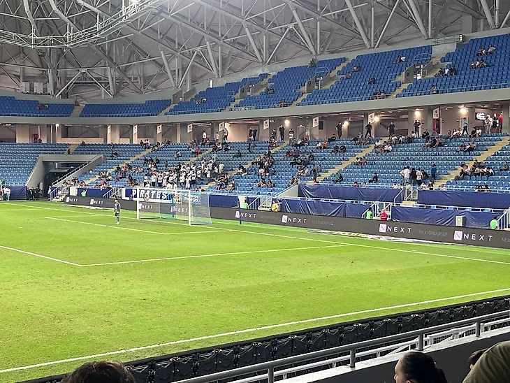 Чаша стадиона чем-то напомнила «Фишт». То ли плавными линиями, то ли цветовой гаммой, то ли маленьким количеством зрителей.