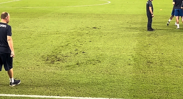 Да и проблемы с газоном здесь такие же, которые хорошо знакомы нашему южному стадиону.