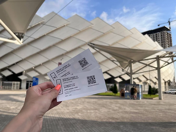 Билеты были в четырех ценовых категориях – 5, 10, 15 и 20 лари. Чтобы узнать в рублях, умножайте на 33. Билеты совершенно обычные, на бланке билетного оператора.