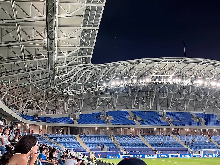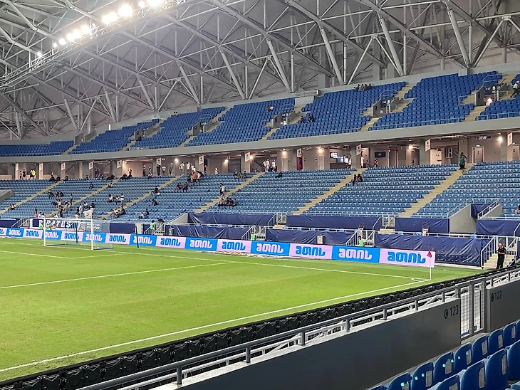 Мне казалось, что футбол в Грузии любят и атмосфера должна быть классной. Но за 15 минут до начала матча трибуны за воротами, всегда и везде являющиеся фанатскими, навевали тоску.