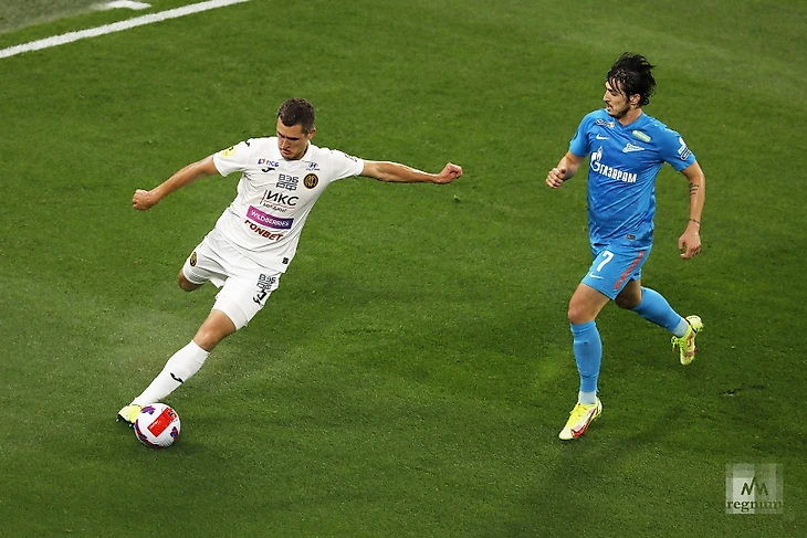 Началось всё так, как мы все и ожидали, я думаю. Зенит не спеша забрал мяч и преимущество, постепенно наращивал давление. Момент Малкома напоминал аналогичный в матче с Уфой. Игорь, к счастью, не сплоховал. К середине тайма Зенит будто угомонился, и мы стали понемногу забирать инициативу себе. Я поначалу не мог понять, как это произошло. Но тут и Заболотный стал уверенно цепляться за мячи, и Дзага хорошо двигал мяч, и крайние защитники наши были продуктивны. Задвигалось всё, появилась надежда на опасные моменты.