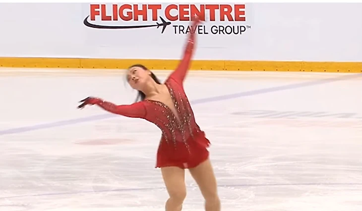 Что это опять было: Вакаба Хигучи. Из бабуинской короткой переместилась в скачущую козочку в произвольной под «Времена года». Смотреть до конца козочку на лужке не хочется: прыжки просто ужасные. Платье сомнительно, не поймёшь этих женщин: красное надо отдать танцорам в танго, а себе забрать под «ВГ» всё синее и зелёное оттуда.
