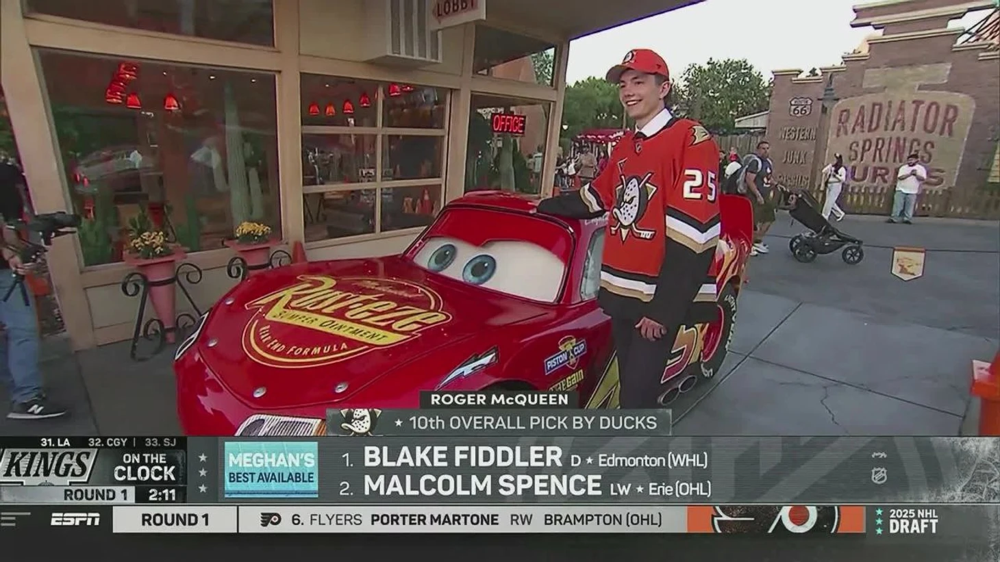 По прибытию в Диснейленд Маккуин направился на совместную фотосессию с «тёзкой». Роджер настолько быстро приехал в парк, что успел попасть в прямой эфир под конец первого раунда. Интересно, что игрок будет также выступать за «Анахайм» под №95, как и Молния!