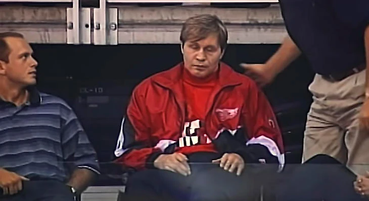Вячеслав – единственный, кто в этом фильме говорит на русском языке. Это важная часть истории – он приехал в Детройт и первые два месяца был уверен, что все вокруг должны учить русский, чтобы с ним пообщаться. Он почти не изменился за годы в НХЛ – интервью из чемпионской раздевалки в 1997-м он дает при помощи пары простых фраз, а по лицу понятно, что репортерам пора валить.