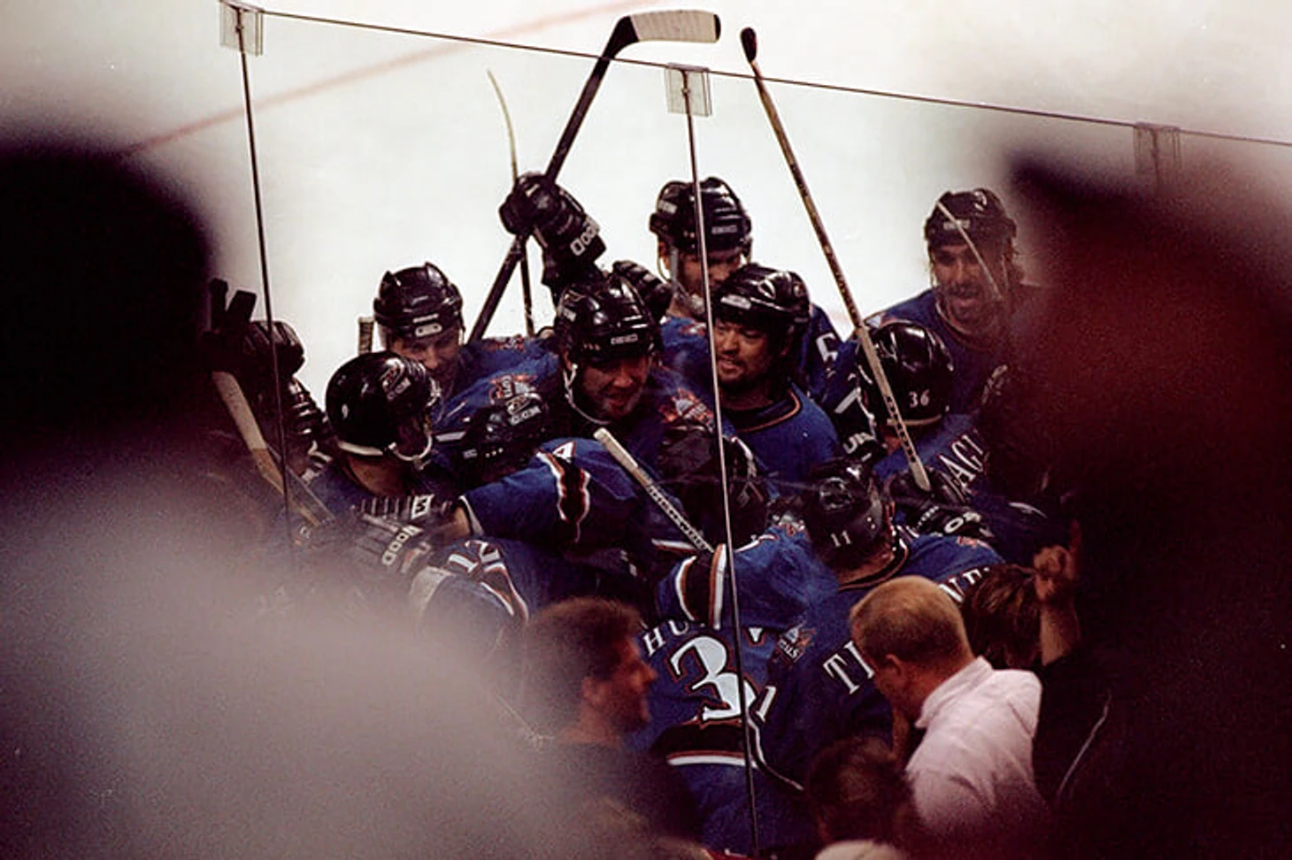 «Мой худший шаг. Мы никого не могли найти на рынке, потому что появилась ВХА, и парни из НХЛ поехали в новую лигу на серьезные контракты в сотни тысяч и миллионы долларов. Я даже не пытался проводить обмены – мне просто некого было предложить. И мы шли тем составом, что у нас был».