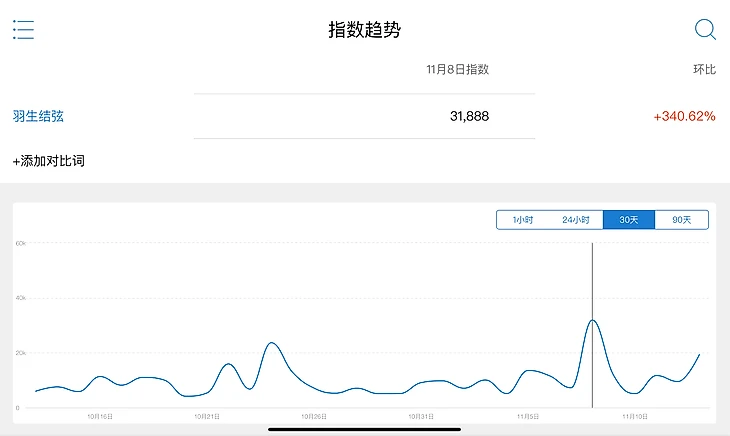 Юзуру Ханю (羽生结弦, контент в Weibo). Просто оставлю здесь для сравнения. Прямая ссылка на статистику. 8 ноября значение Micro index было 31 888. (И мы, конечно же, помним про рекорд Юзу во время премии ISU Skating Awards - 736 400)