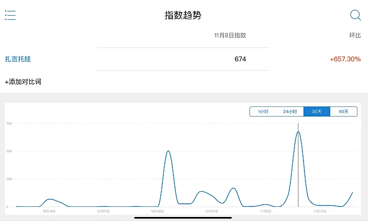 Алина Загитова (扎吉托娃, контент в Weibo). Прямая ссылка на статистику. 8 ноября значение Micro Index было 674.