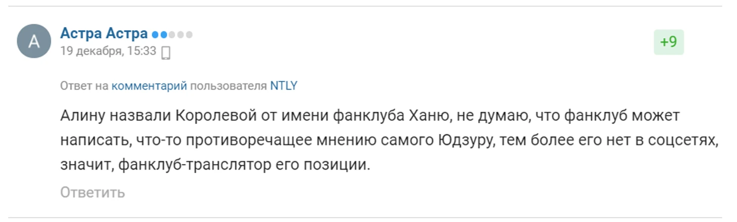 Веселая, конечно, ситуация. Даже имя не совпадает)) как можно было подумать, что это Юзу или официальный фан-аккаунт, транслирующий его позицию🙈?))
