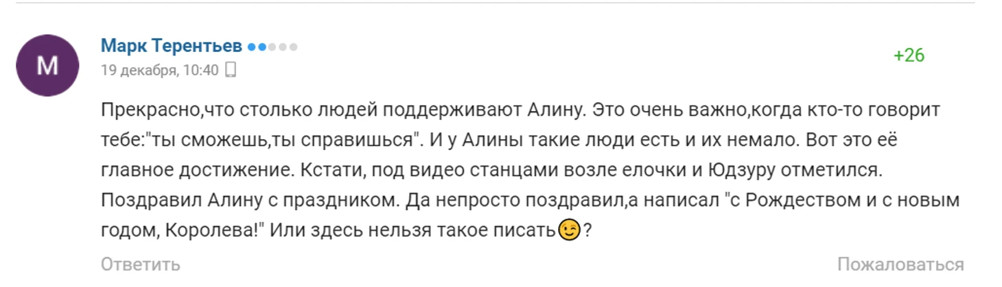 Вот интересно, а Алина сама поздравляла других фигуристов (то есть не ТШ и Владимира Владимировича) с праздниками? Например, с Днем Рождения. У неё же есть соцсети, никаких «если бы».