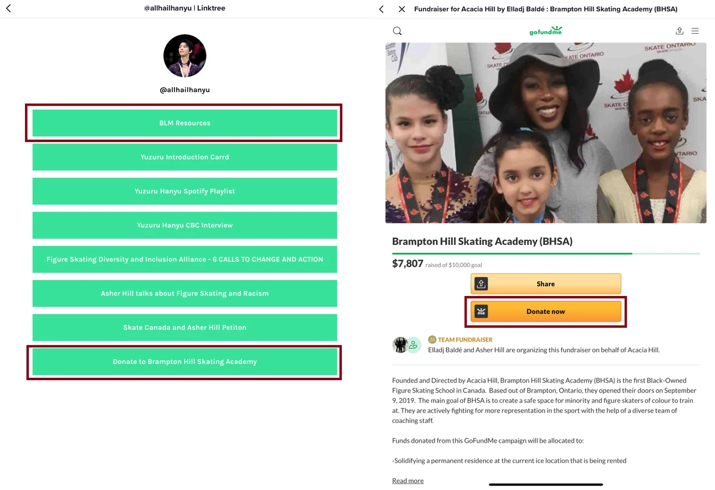 Видно, что пользователь занимает активную жизненную позицию - BLM и помощь в сборе средств для первой школы по фигурному катанию для темнокожих детишек Канады. Но как мы с вами знаем, Юзуру никогда не высказывал свою официальную позицию относительно BLM, поэтому данный пользователь никаким образом не является транслятором позиции Юзуру.