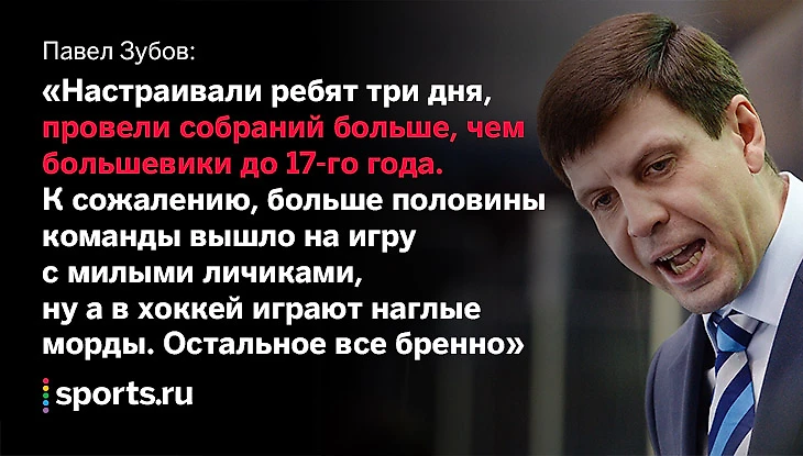 Только вот результаты у новосибирцев действительно посредственные – команда уже на 7 очков отстает от зоны плей-офф и все чаще появляются слухи об отставке Павла Зубова. Sports.ru собрал самые яркие цитаты самого красноречивого тренера КХЛ, пока его не уволили.