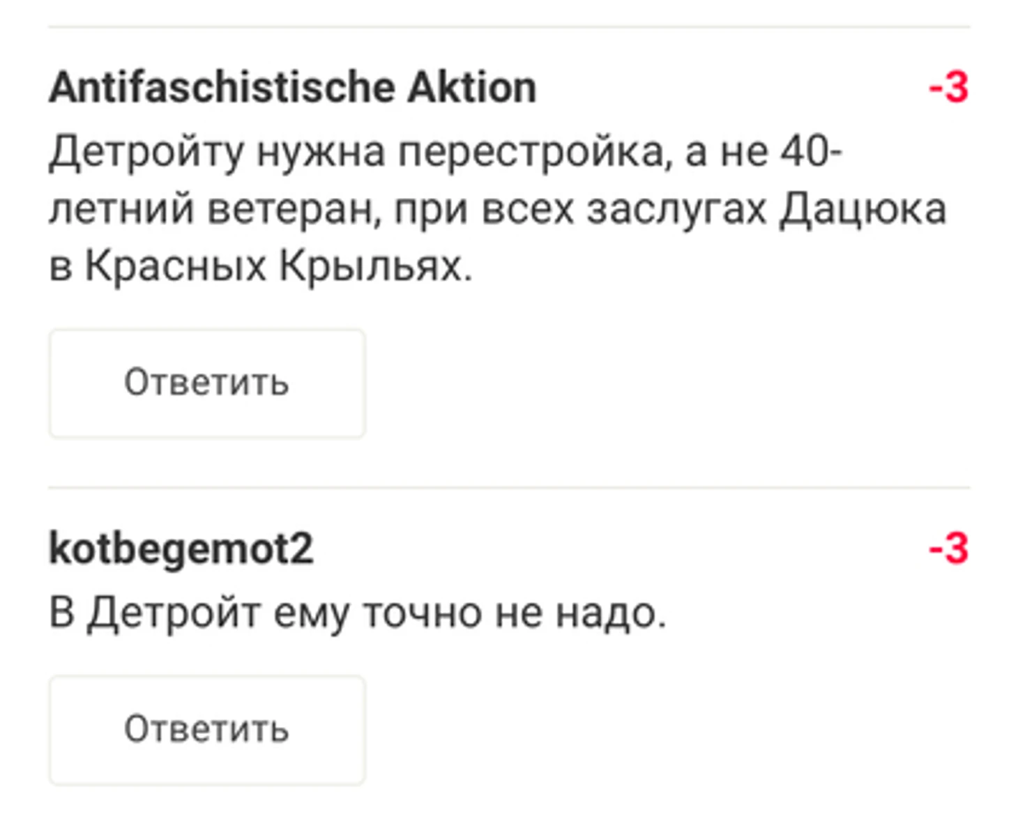 «Вы шутите? Максимум – перейти в ВХЛ». Пользователи Трибуны решили, что делать Дацюку после сезона