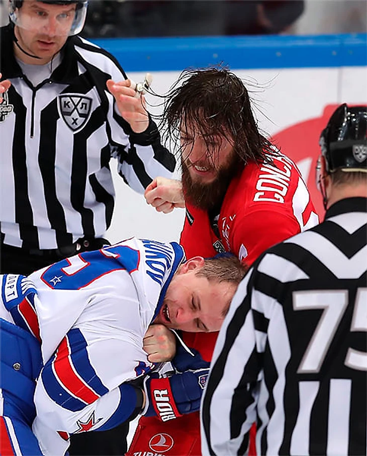 В третьем периоде игра чуть успокоилась – только форвард хозяев Глеб Шашков жестко пошел на Павла Дацюка, за что его попытался наказать Сергей Плотников. В итоге команды наиграли в сумме на 71 минуту штрафа.
