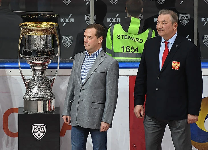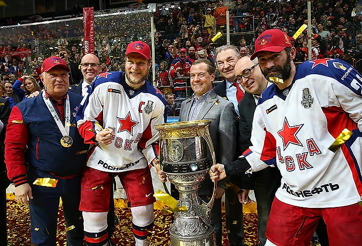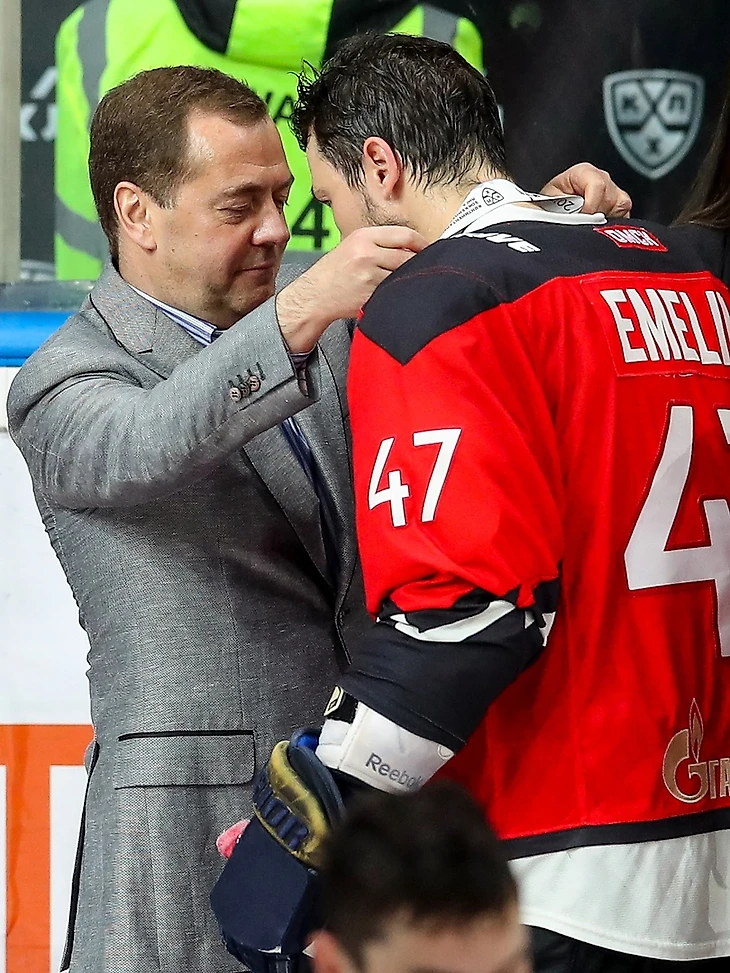 В итоге медаль досталась и самом у премьер-министру. Президент ФХР Владислав Третьяк вручил ему одну из золотых медалей, вручавшихся игрокам, тренерам и персоналу ЦСКА.
