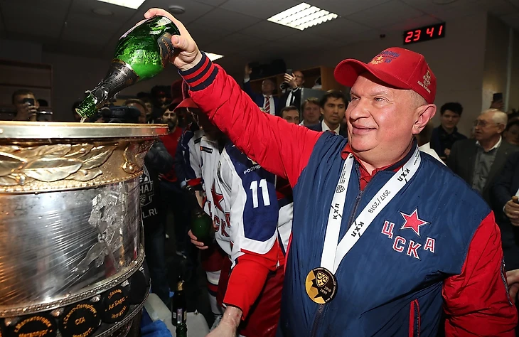 Но больше всего радовался глава «Роснефти» – генерального спонсора ЦСКА – Игорь Сечин, которого тоже наградили золотой медалью. Как и Орешкин, он подливал шампанское в трофей.