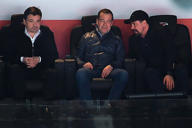 Кроме Медведева на трибунах можно было заметить и члена Совета безопасности России Сергея Иванова: он сидел в модной клубной бейсболке в компании с легендарным хоккеистом Сергеем Федоровым.