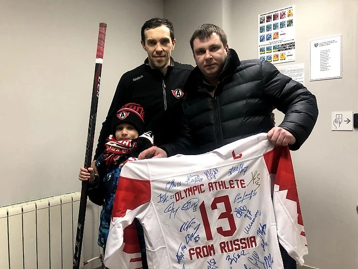В подтрибунке он встретился с Петром Новожиловым и отдал ему свитер сборной, в котором выиграл золото Пхенчхана-2018 – с автографами всей команды. Вместе с ним Дацюк передал и клюшку с автографом.
