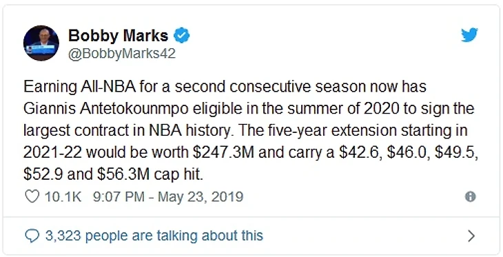 Судя по всему, если Адетокунбо не выиграет MVP в этом сезоне, он сделает это в следующем. Или через сезон. Это его уже третье попадание в символическую пятерку за последние три года, поэтому если Бакс хотят предложить ему супермаксималку сейчас, то они вполне это сделать, что сделает Янниса обладателем самого жирного контракта за всю историю НБА.