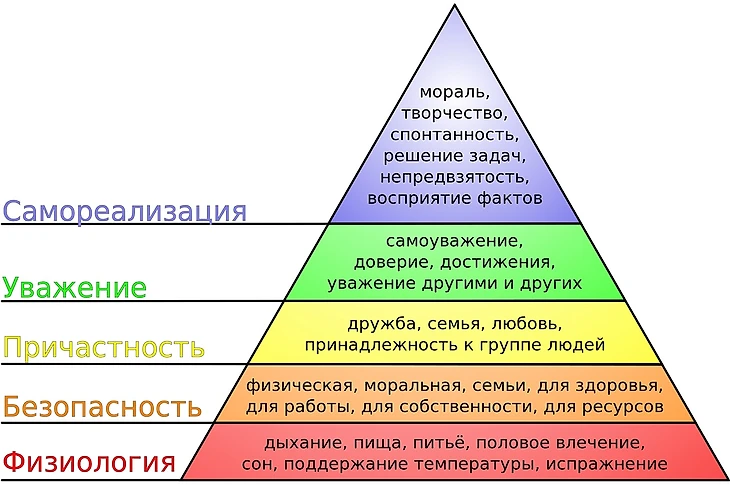 Некоторым, возможно, известна так называемая «пирамида потребностей». Психолог Абрахам Маслоу составил иерархию всего, что нужно человеку, и графически выразил результат в виде пирамиды. Суть в том, что каждая потребность располагается на определённом уровне, и человеку, прежде чем перейти на более высокую ступень, необходимо утолить текущие нужды. Каждый из нас подсознательно стремится к вершине пирамиды - самореализации, но встречает на пути множество преград: физиологические потребности, потребность в безопасности, в принадлежности, в признании, познавательные потребности и тому подобное. При этом важно помнить, что если не удовлетворены базовые подсознательные запросы, то переход на высшие уровни невозможен.