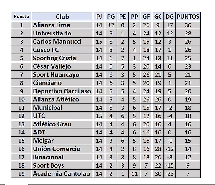 Шедший на 3 месте ФК Куско, пропускал матч 2 тура. Напомню, что в перуанской Лиге 1 играют 19 команд, поэтому одна из них пропускает матч тура. Благодаря этому с Куско сравнялся по очкам Карлос Маннуччи. Могли бы и выйти на чистое третье место, однако их обыграл один из аутсайдеров турнира УТК.