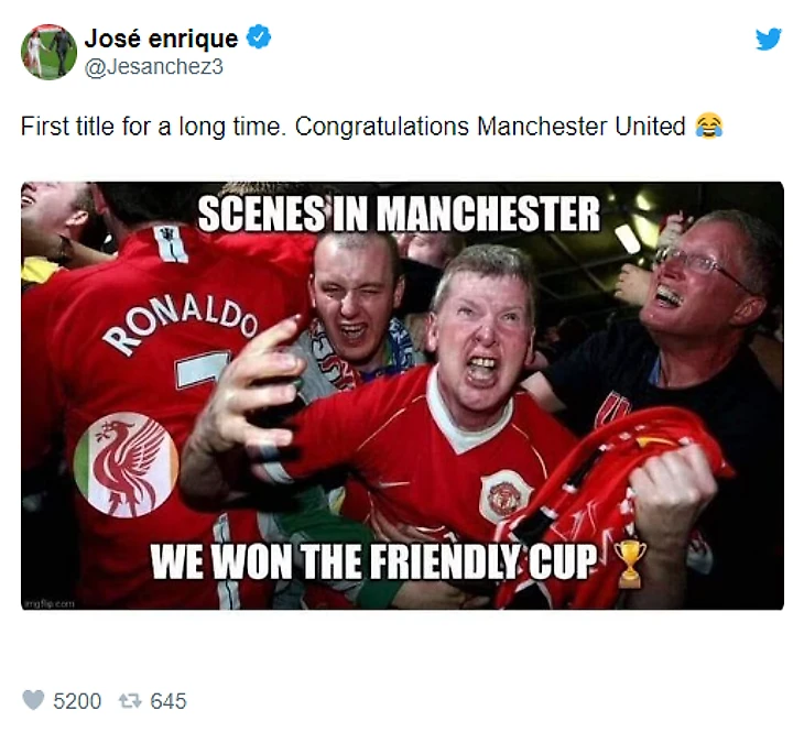 «Первый титул за долгое время. Поздравляю, «Манчестер Юнайтед», — написал Энрике в Twitter.