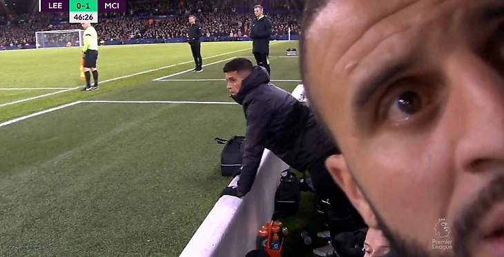 Кайлу Уокеру скучно на матче «Лидс» - «Сити»: он ворвался в трансляцию прямо со скамейки