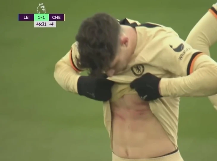 На торсе немца остались следы от шипов после того, как игрок «Лестера» ударил его ногой в грудь на 45 минуте.