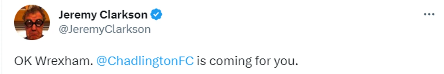 В своем личном аккаунте в Твиттере Джереми написал следующее: «Окей, «Рексхэм». «Чедлингтон» идет за вами».