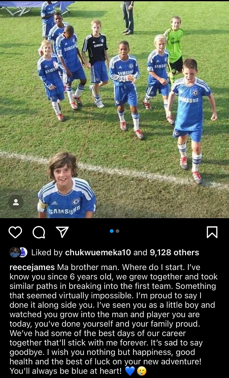 Уже бывший партнер Маунта по «Челси» Рис Джеймс у себя на странице выложил трогательный пост, посвященный своему другу детства.