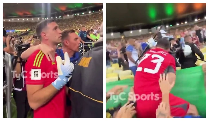 Игроки сборной Аргентины практически сразу подошли к трибуне в попытке погасить конфликт. Также к зрителям направился капитан хозяев Маркиньос. А вратарь гостей даже пытался прорваться на трибуны, чтобы защитить своих болельщиков.