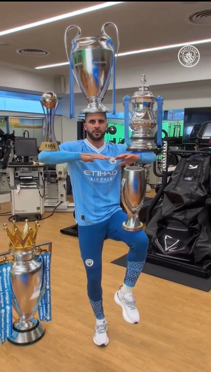 Фото года? «Сити» выложил Уокера с пятью трофеями – он попытался поднять все сразу