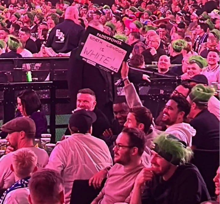 Мэддисон пришел на финал ЧМ по дартсу с табличкой «Северный Лондон – белый». Но охрана отобрала ее