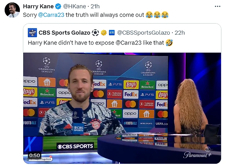 Позже Харри репостнул видео диалога в свои соцсети, вновь обратившись к легенде «Ливерпуля»: «Прости, Карра, но все тайное всегда становится явным!»