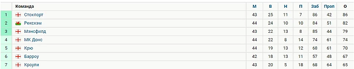 Прямой промоут могут получить только три первых команды лиги. «Рексхэм» играл против абсолютного аутсайдера «Форест Грин» и разгромил его дома 6:0. В параллельном матче «МК Донс», претендовавший на одно из трех мест, проиграл 1:4 «Мэнсфилду» и за два тура до конца потерял шансы догнать валлийцев.