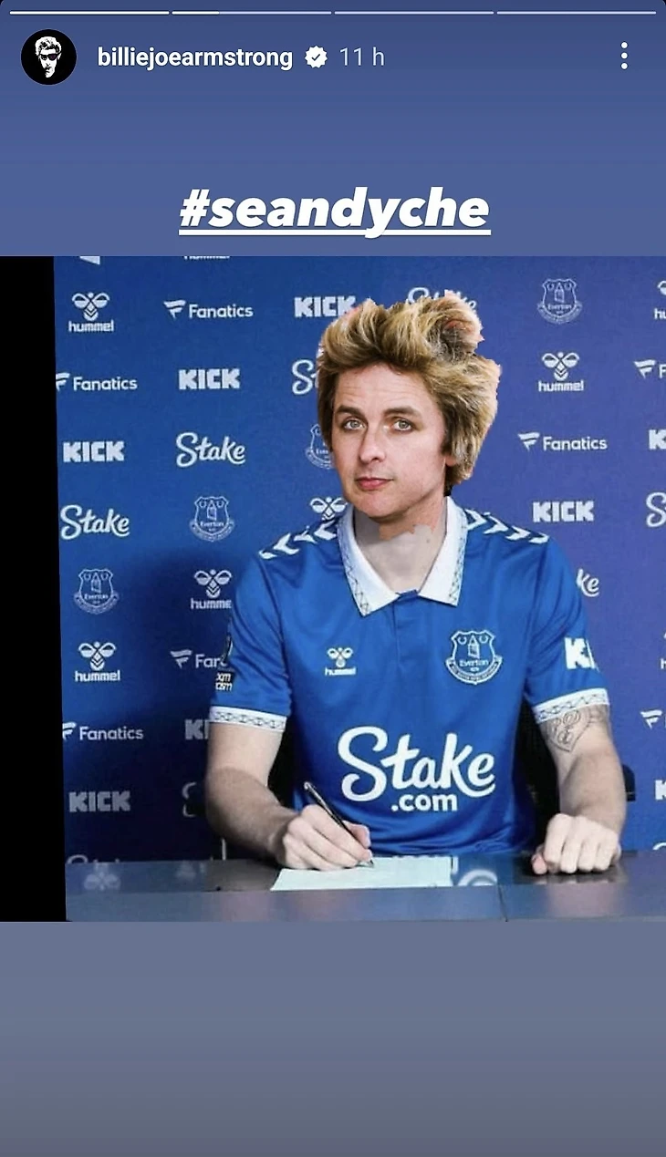 Фронтмен группы, Билли Джо Армстронг, в ответ признался в любви «Эвертону». После мерсисайдского дерби музыкант в своем фирменном стиле поздравил «ирисок» с победой:
