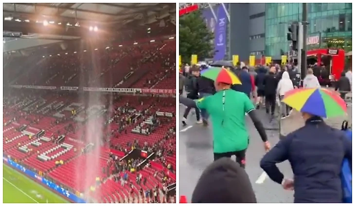 Однако у многих болельщиков главным впечатлением от игры и стадиона стал водопад, который возник из-за того, что крыша «Олд Траффорд» решила показать, что нуждается в серьезном ремонте.
