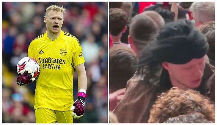Болельщиков, которые пришли на стадион, очень удивило появление на трибунах неожиданного человека − вратаря «Арсенала» Аарона Рэмсдейла. Причем еще больше впечатлило то, как он был одет.