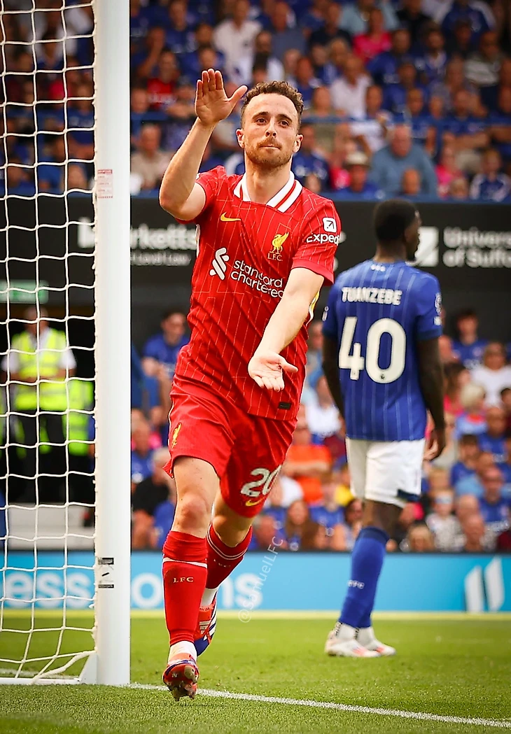 Диогу Жота полюбился Арне Слоту – португалец начал матч против «Ипсвича» в старте и оправдал доверие: идеально завершил пас Мо Салаха и отпраздновал фирменным жестом пасти хищника.