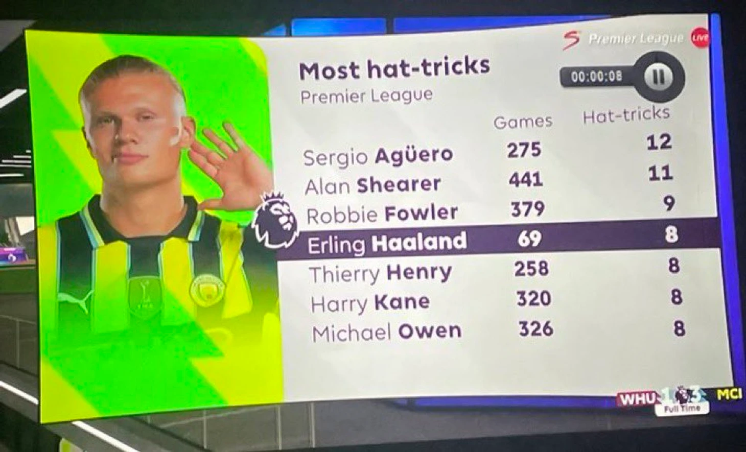 Эрлинг Холанд оформил сегодня хет-трик. Это случилось уже в восьмой раз за время выступлений норвежца в АПЛ.