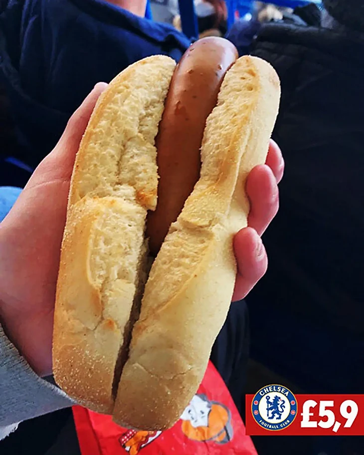 Целых 5,9 фунтов за хот-дог на «Стэмфорд Бридж». Но здесь можно найти оправдание в том, что размер сосиски внушает и явно утолит голод.