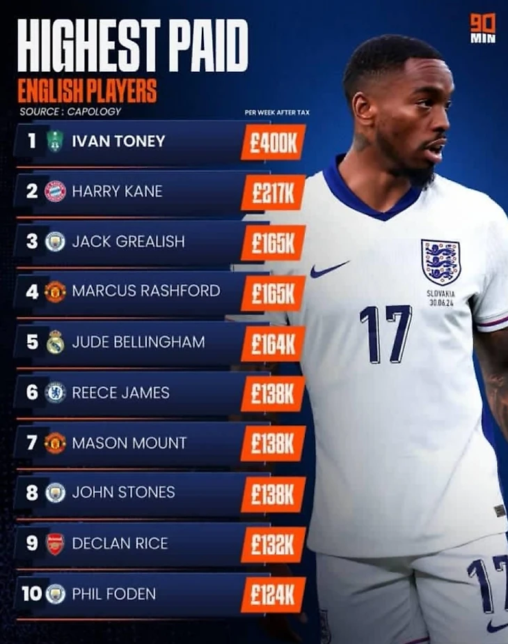 Кто зарабатывает больше всех среди англичан? Тоуни платят в два раза больше, чем Кейну