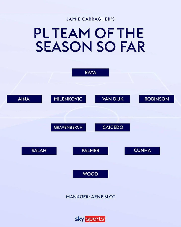 Джейми Каррагер и Гари Невилл специально для Sky Sports составили сборную лучших игроков АПЛ в первой половине сезона-2024/25. Для непримиримых оппонентов легенды английского футбола проявили удивительное единодушие.