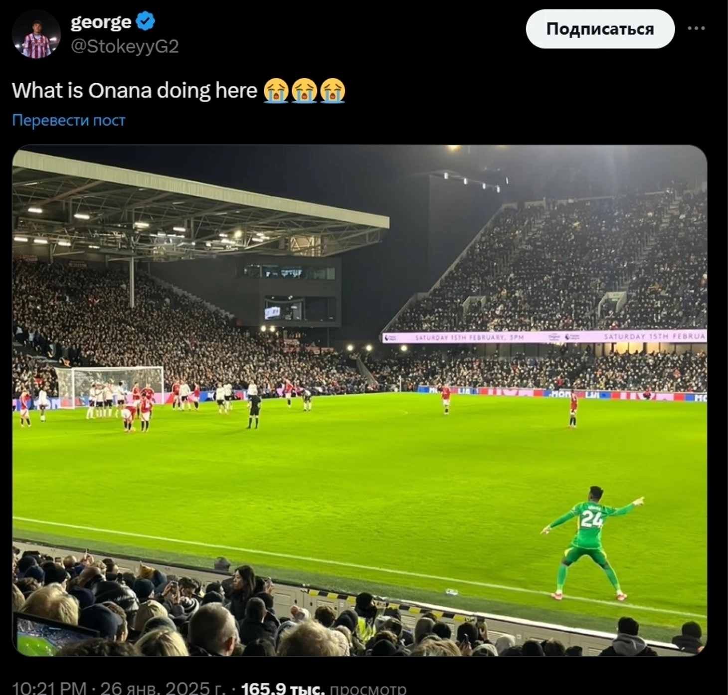 Онана решил стать тренером «МЮ» в матче с «Фулхэмом»: неожиданно прибежал к боковой и дал указания игрокам